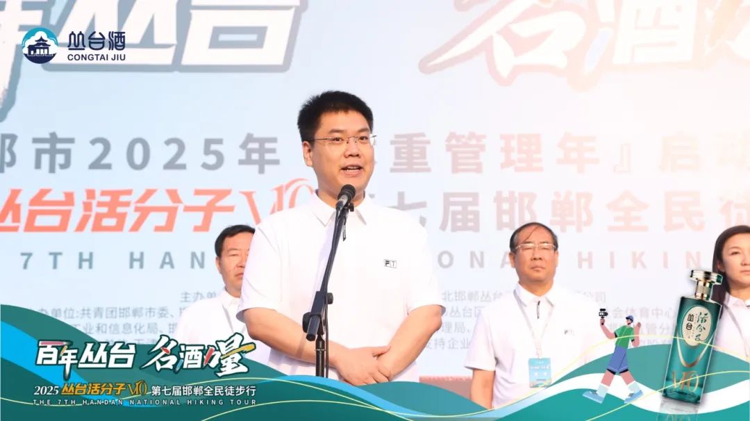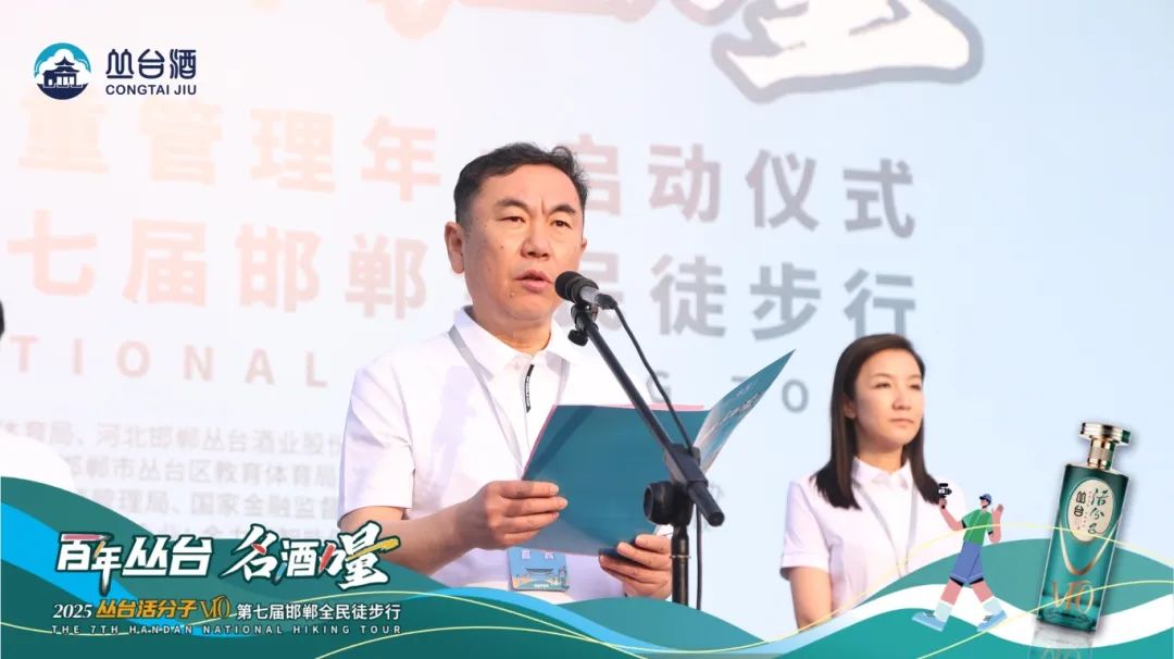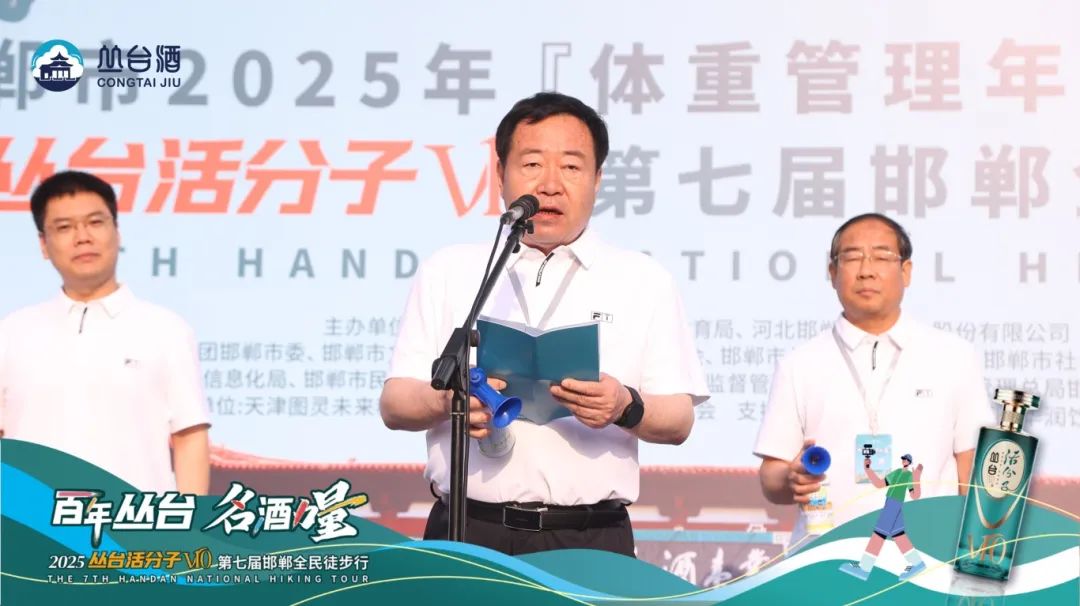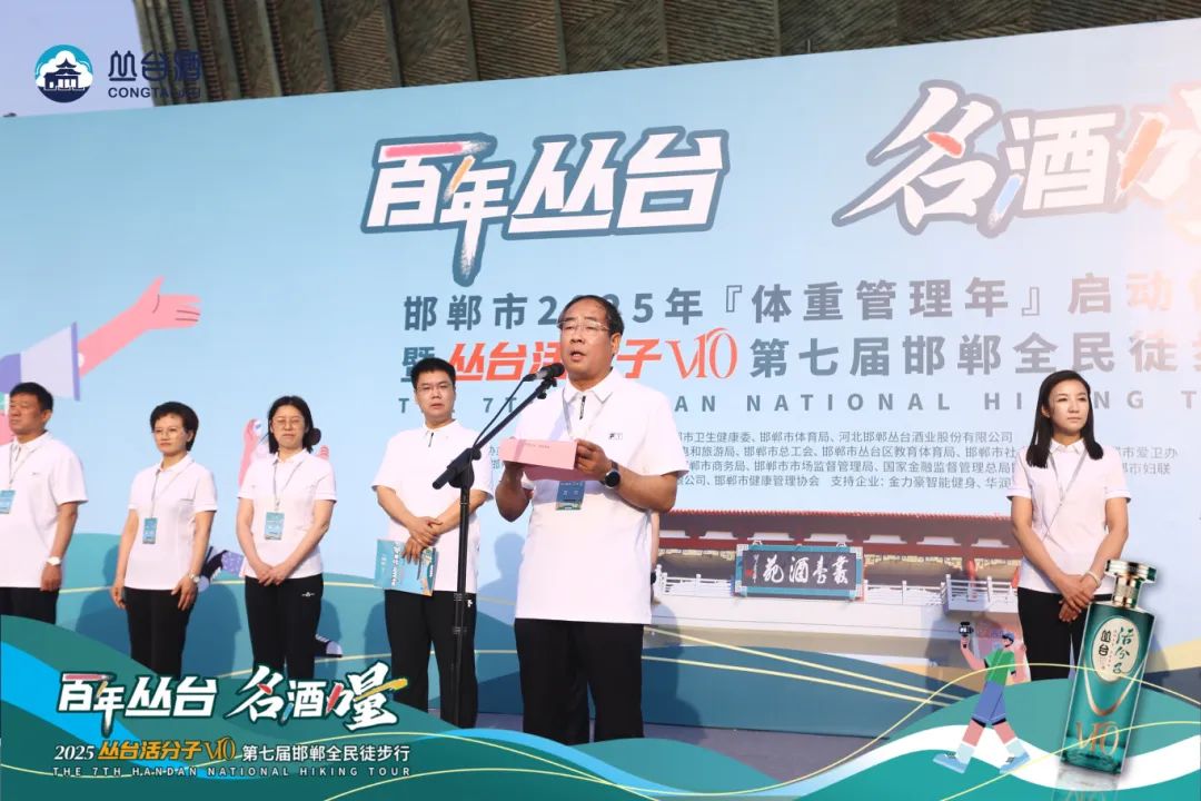 本次活動由叢臺酒業(yè)攜手邯鄲市衛(wèi)生健康委、邯鄲市體育局主辦,由共青團(tuán)邯鄲市委、邯鄲市文化廣電和旅游局、邯鄲市總工會、邯鄲市叢臺區(qū)教育體育局、邯鄲市社會體育中心、邯鄲市愛衛(wèi)辦邯鄲市工業(yè)和信息化局、邯鄲市民政局、邯鄲市商務(wù)局、邯鄲市市場監(jiān)督管理局、國家金融監(jiān)督管理總局邯鄲監(jiān)管分局、邯鄲市婦聯(lián)、肥鄉(xiāng)區(qū)政府協(xié)辦,并得到怡寶礦泉水等企業(yè)鼎力支持。出席活動領(lǐng)導(dǎo)有:邯鄲市人大常委副主任李海平,邯鄲市衛(wèi)健委黨組書記李之杰,共青團(tuán)邯鄲市委書記徐幗一,邯鄲市婦聯(lián)黨組書記、主席陳國慶,邯鄲市文化廣電和旅游局副局長胡利娜,邯鄲市體育局黨組成員、副局長韓林學(xué),邯鄲市總工會黨組成員、副主席周志理,邯鄲市民政局黨組副書記、副局長、三級調(diào)研員卜炳獻(xiàn),邯鄲市工業(yè)和信息化局副局長趙鋒,邯鄲市商務(wù)局副局長薛學(xué)林,邯鄲市教育局副局長高嘉藝,邯鄲市體育局三級調(diào)研員殷衛(wèi)兵,國家金融監(jiān)督管理總局邯鄲監(jiān)管分局三級調(diào)研員趙代政,邯鄲市商務(wù)局四級調(diào)研員劉永峰,邯鄲市愛衛(wèi)辦副主任王軍磊,邯鄲市肥鄉(xiāng)區(qū)人民政府副區(qū)長韓峰,叢臺酒業(yè)集團(tuán)總經(jīng)理李鵬亮。活動以“百年叢臺,名酒力量”為核心主題,熱烈響應(yīng)邯鄲市“體重管理年”健康倡議,同時獻(xiàn)禮叢臺酒業(yè)建廠80周年,以徒步為紐帶,倡導(dǎo)全民科學(xué)健身與健康生活方式,為建設(shè)活力邯鄲、健康邯鄲注入新動能。