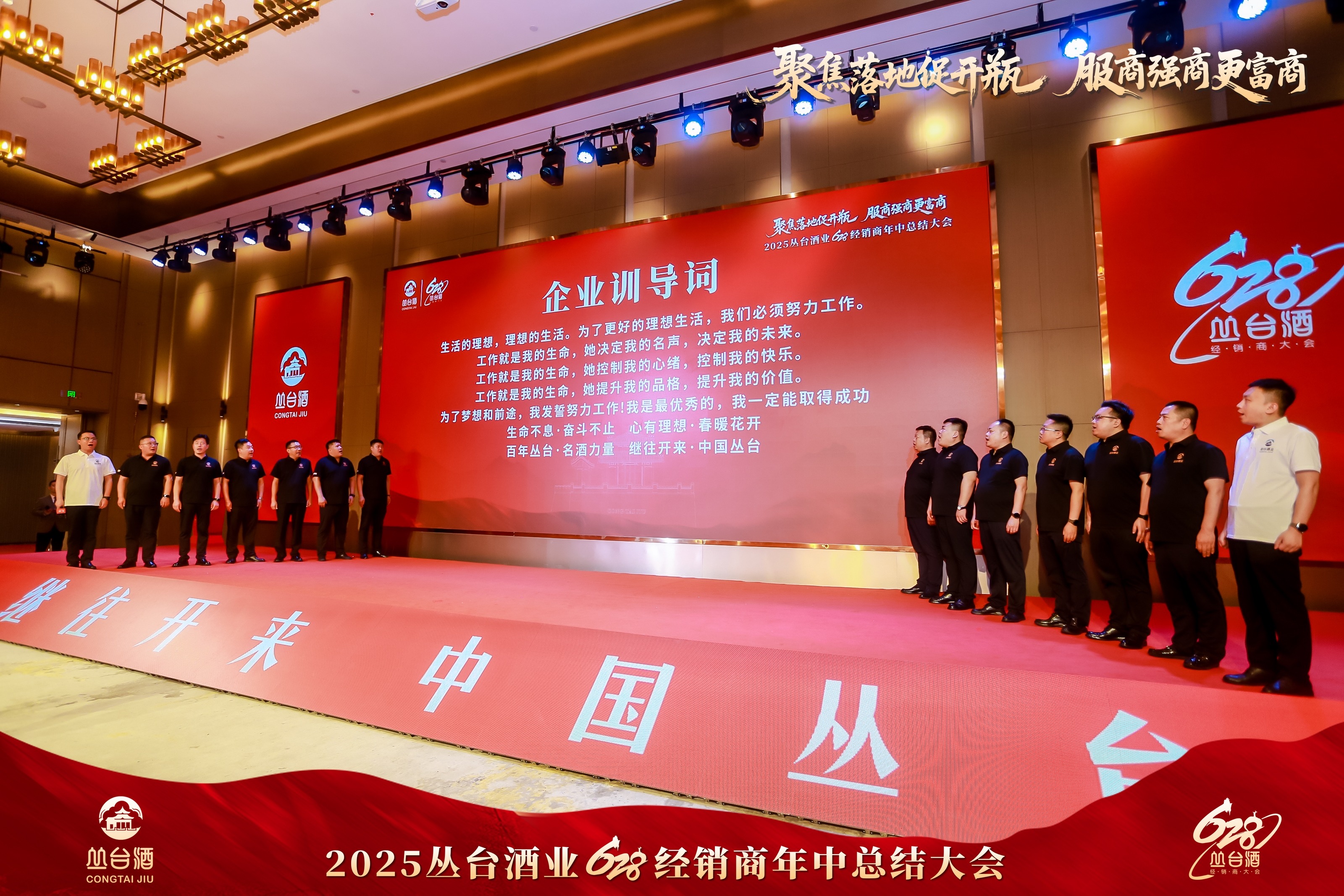 在企業(yè)訓(xùn)導(dǎo)詞環(huán)節(jié),叢臺酒業(yè)營銷有限公司二公司營銷總監(jiān)季磊帶領(lǐng)團(tuán)隊(duì)領(lǐng)誦企業(yè)訓(xùn)導(dǎo)詞,“快速決策,馬上落實(shí)”“強(qiáng)商富商,共同發(fā)展”的理念響徹會場。隨后,全體領(lǐng)導(dǎo)、嘉賓及經(jīng)銷商在酒店大堂拍攝紀(jì)念合影,定格這一重要時(shí)刻。